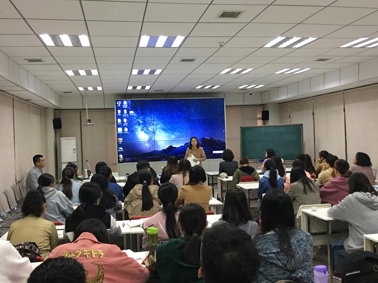 教学院长杨梅教授、王秋教授、黄翠英副教授参加讲座活动,杨梅副院长代表学院欢迎世界杯