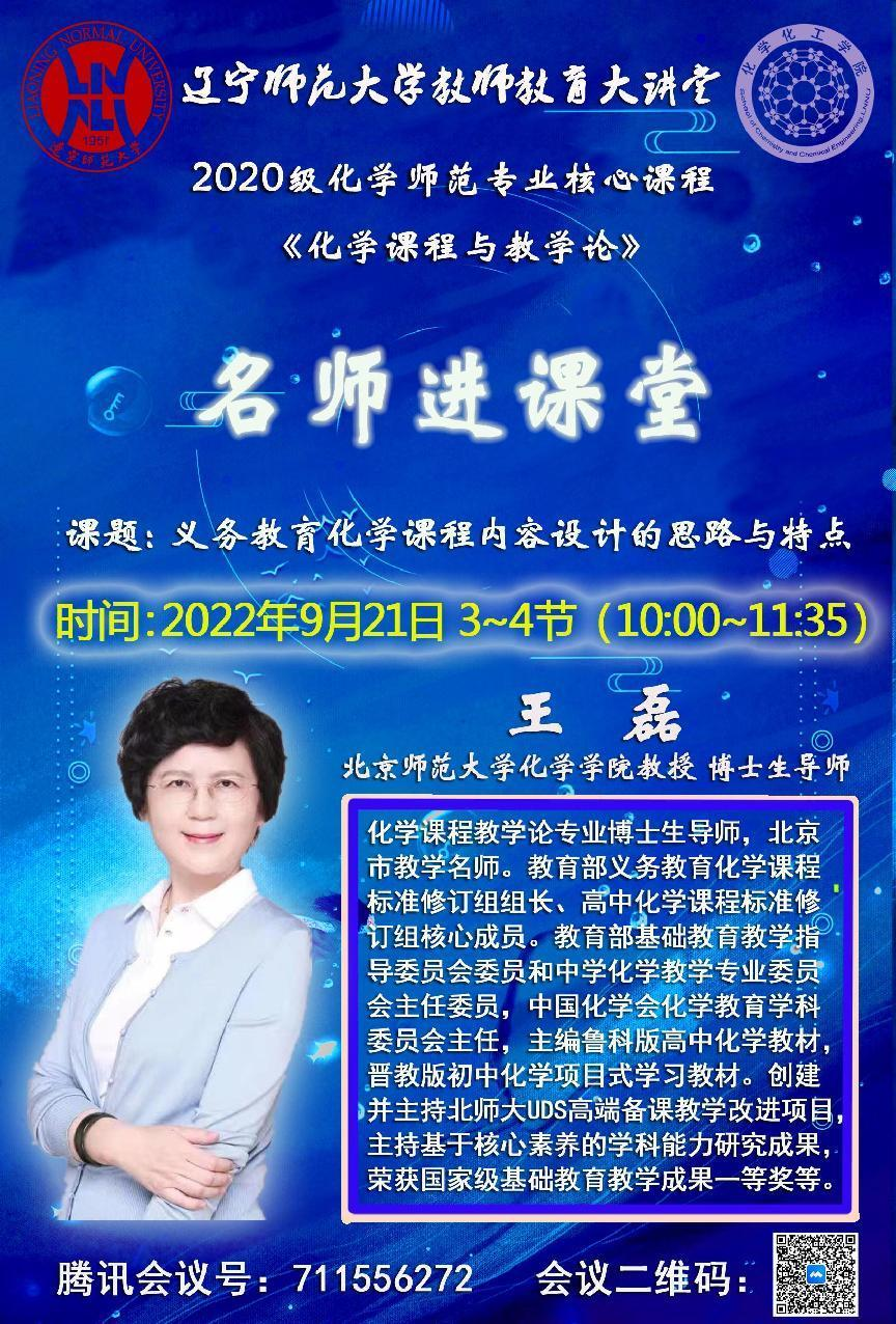于9月21日上午通过腾讯会议成功举办“名师进课堂”活动。本次活动特邀教育部义务教育化学课程标准修订组组长、北京师范大学化学学院博士生导师王磊教授莅临世界杯