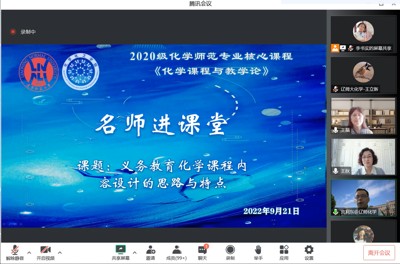 化学(师范)专业核心课程《化学课程与教学论》的线上课堂,为2020级化学(师范)专业本科生以“义务教育化学课程内容设计的思路与特点”为题进行教学。