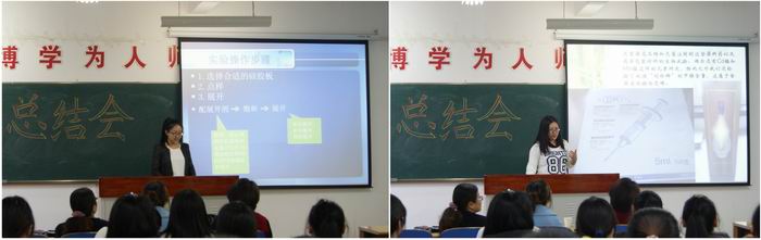 会议的第二个环节是优秀实习生代表于晓婷、范琛琛等五名同学以PPT的形式,交流实习体会与收获,同学们表达了通过实习能够掌握书本上所学不到的知识,开拓了自己的视野,应该努力学好专业知识,为医药事业发展做出贡献,并对今后的实习工作提供很多建设性意见和建议。