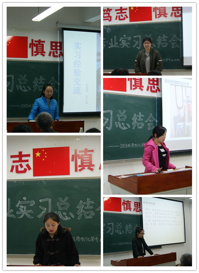 会上,来自药检所化学室、中药室、抗生素室、生化室和技术室的5位实习学生代表展示了在药检所近2个月的实习内容,分享了实习过程中的见闻和体会。同学们纷纷表示,非常珍惜学院为他们提供如此的难得的实习机会,感谢药检所的领导和老师在实习中的关心和帮助。学生的汇报内容引起了各位参会领导和老师的高度评价。