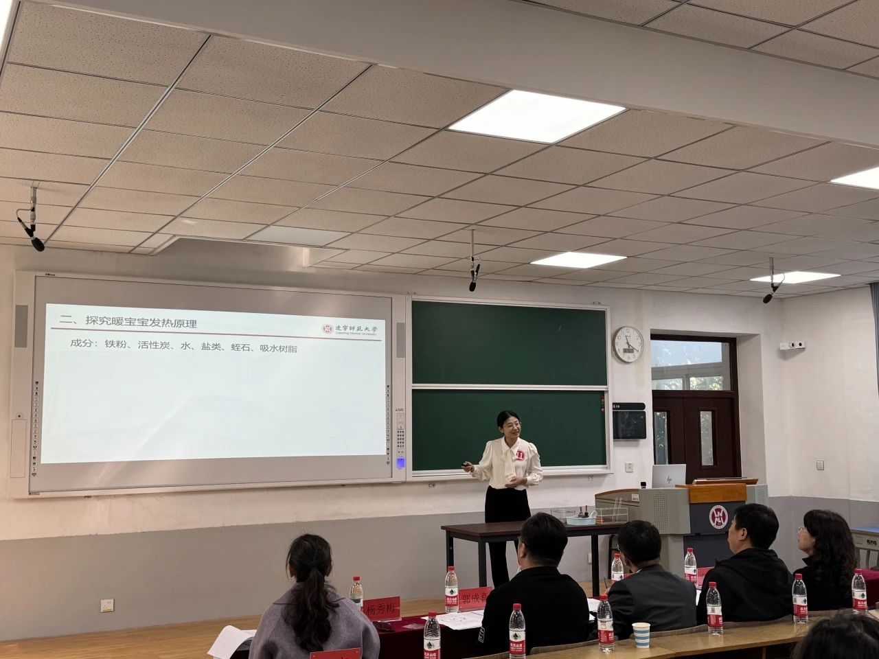 王金歌同学以生活中常见的物品暖宝宝入手,带领同学们探究了暖宝宝发热的原理,让同学们感觉化学就在身边,并利用了手机软件对暖宝宝发热过程中压力进行测定,把化学实验搬出了实验室,让化学实验变得可操作性极强。最后利用暖宝宝发热原理,带领同学们制作了一个简易的暖宝宝,增加了化学的趣味性和可操作性。王金歌同学利用了希沃白板、手持数字技术、投屏等教学方式,展现了一堂非常生动的化学课。化学是一门以实验为基础的学科,通过化学实验的学习,不仅可以培养学生的观察思考、动手操作的能力,也可以激发学生学习化学的兴趣。敢想,敢问,敢做,就是化学人的精神!最后王金歌同学以91.40分的成绩取得了二等奖。