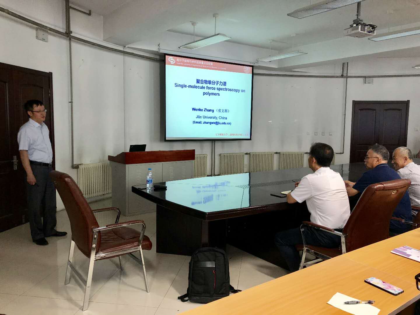 2018914日下午15:00,吉林大学张文科教授莅临世界杯 ,并在理化楼会议室为世界杯 广大师生做了题为《聚合物单分子力谱》的学术报告,出席本次报告会的有部分学院专业教师和研究生同学。宫利东副院长主持了本次报告会。