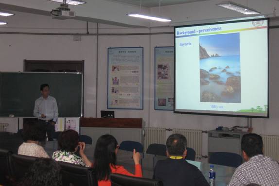 师生作了一场题为《Bioluminescence in silico》的学术报告。报告中,刘亚军教授就其多年的研究成果和主要从事的生物发光理论进行了阐述,并与世界杯