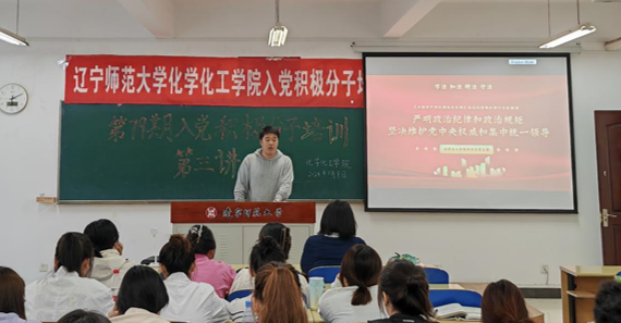 杨冠云老师还引用《关于新形势下党内政治生活的若干准则》的规定,将缺乏政治定力和政治定律的党员领导干部做对比,深入浅出地进行讲解,他谈到入党积极分子应通过深入学习党的理论和路线方针政策,不断提高政治判断力、政治领悟力和政治执行力,确保在思想上、政治上、行动上与党中央时刻保持高度一致。