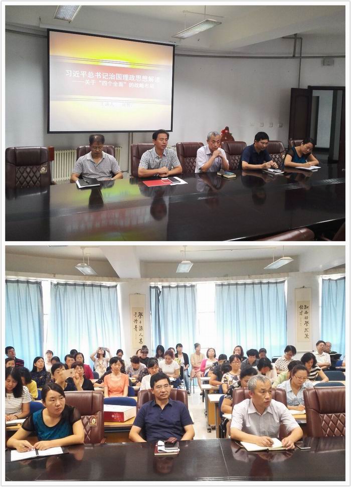 全体教工在四楼会议室认真聆听了题为《习近平总书记治国理政思想解读——关于“四个全面”的战略布局》的讲座,主讲人为世界杯