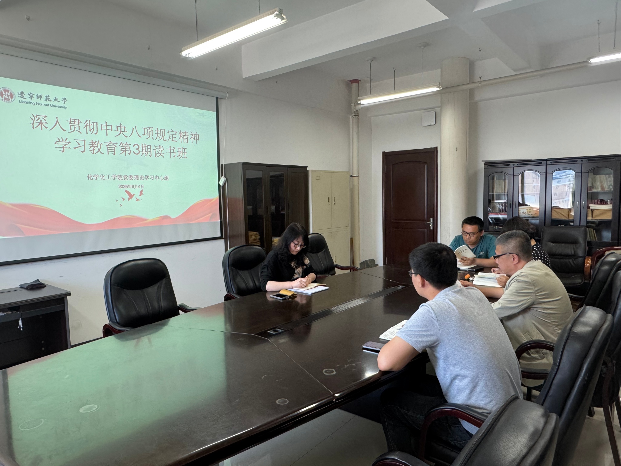 读书班上,理论学习中心组成员石峰和金晶分别认真领读《习近平关于加强党的作风建设论述摘编》第五部分“持续强化纠治‘四风’”和第六部分“各级领导干部要带头转变作风,身体力行,以上率下”。领读结束后,于伟书记带头学习了《党的十八大以来深入贯彻中央八项规定精神的成效和经验》,中心组成员就学习内容进行研讨发言,结合自身学习体会,纷纷表示会牢记总书记对党风建设的要求,从自身做起,起到良好的带头作用,约束各对接党支部成员的作风,做到廉洁清明。