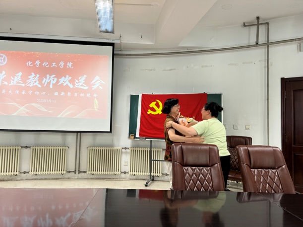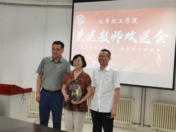 的明天越来越美好。最后,宫利东院长代表学院全体教职工向退休教师表示真诚的敬意和美好的祝福,并与学院党委冯俊勇书记一道为石雷老师颁发了荣退奖牌和礼品,其他两位老师的奖牌和礼品分别由所在支部的支部书记代领,在场教师用热烈的掌声祝愿三位老教师退休快乐。