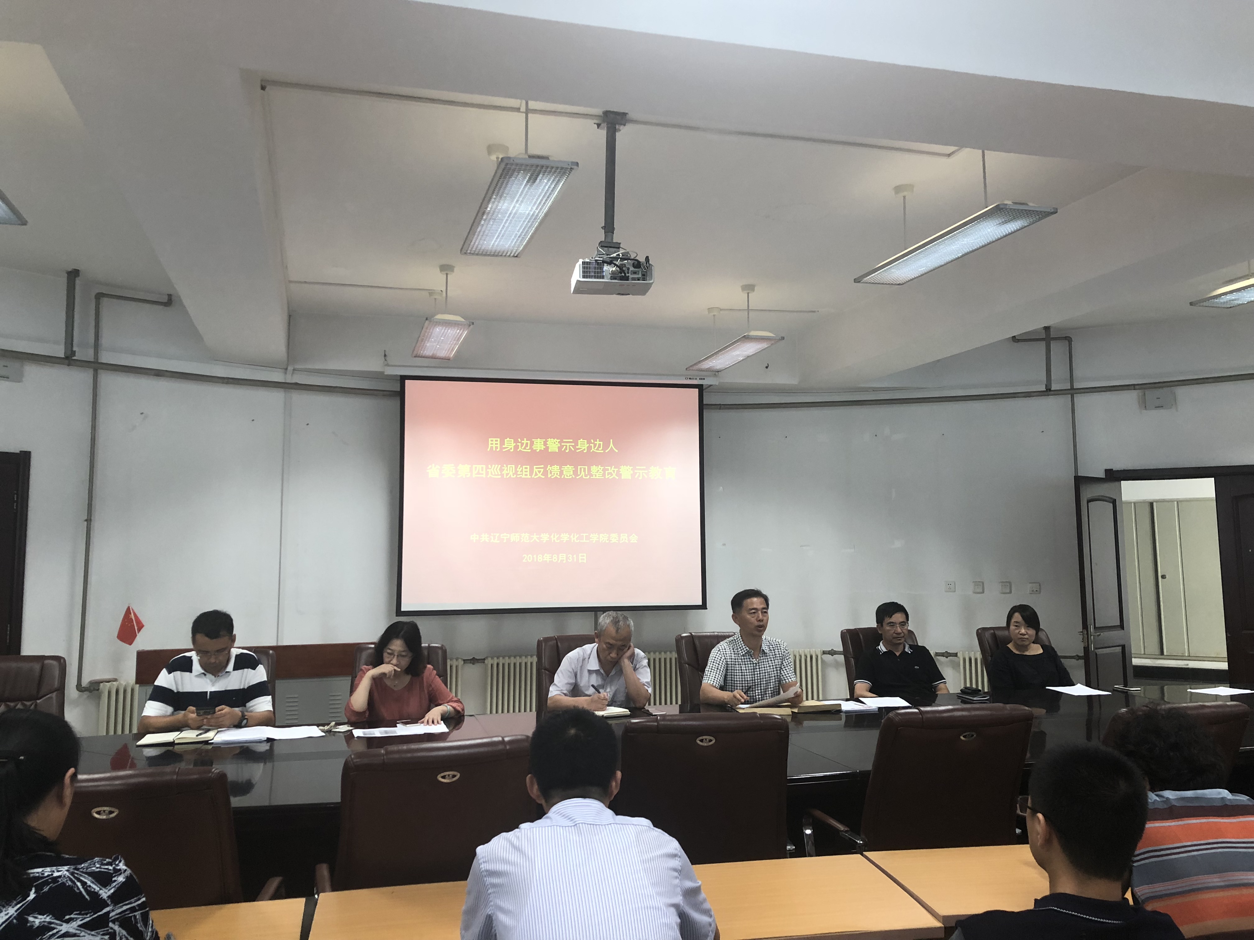 在理化楼C区401会议室召开“用身边事警示身边人”省委巡视组反馈意见整改警示教育会,会议由学院党总支书记刘智广主持,全体教师党员参加。