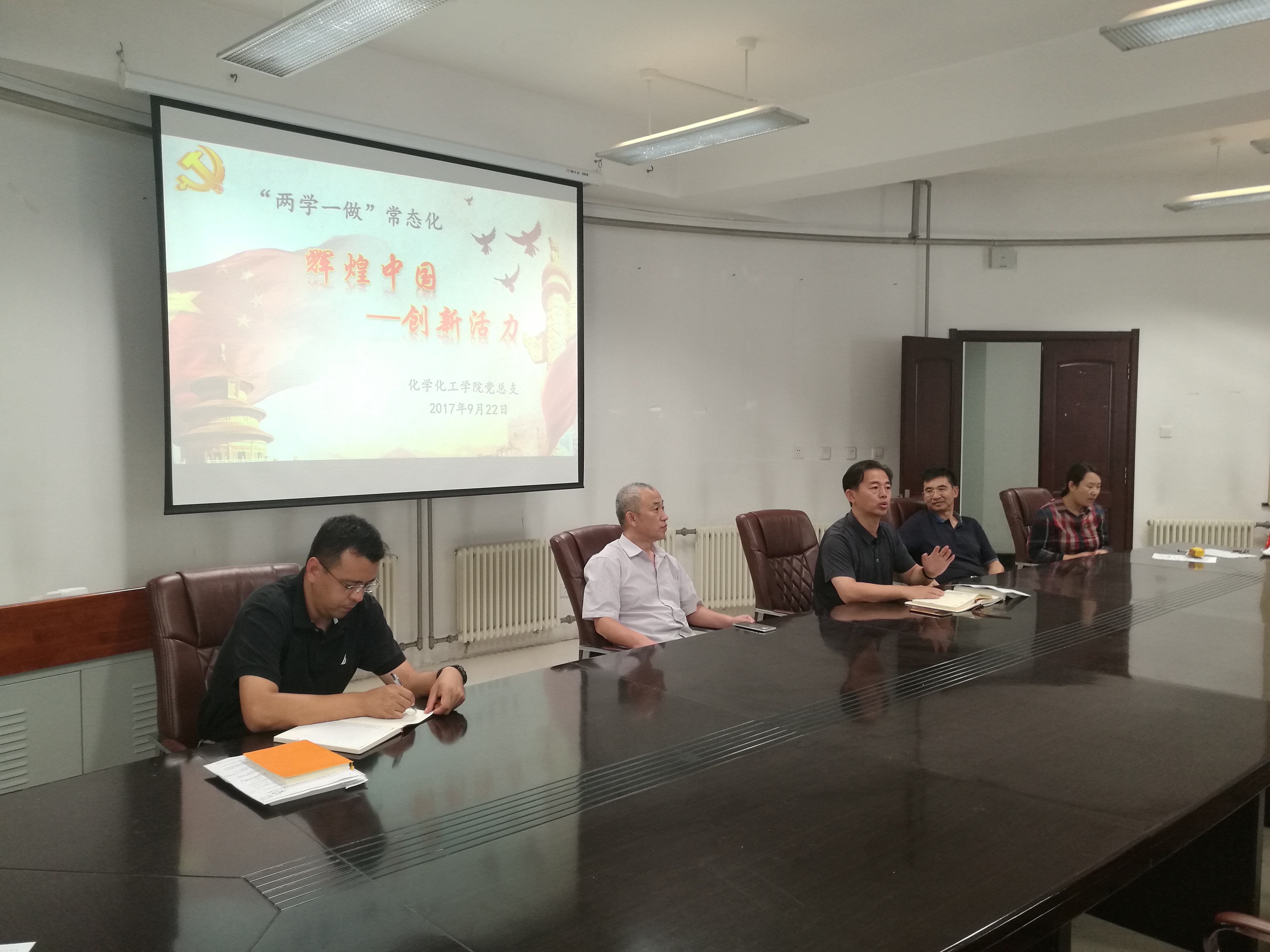 党总支于理化楼C401会议室举办“两学一做”专题学习活动,组织全体教职工观看了电视纪录片《辉煌中国》第二集《创新活力》。