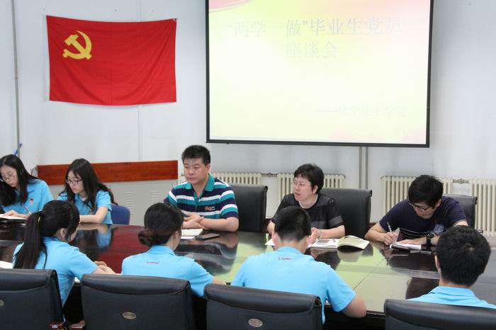 全体2016届本科毕业生党员在会议室召开了“两学一做”毕业生党员座谈会,会议由学院党委副书记李群老师主持,团委书记顾岱泉老师、2014级辅导员于祥昀老师参加会议。