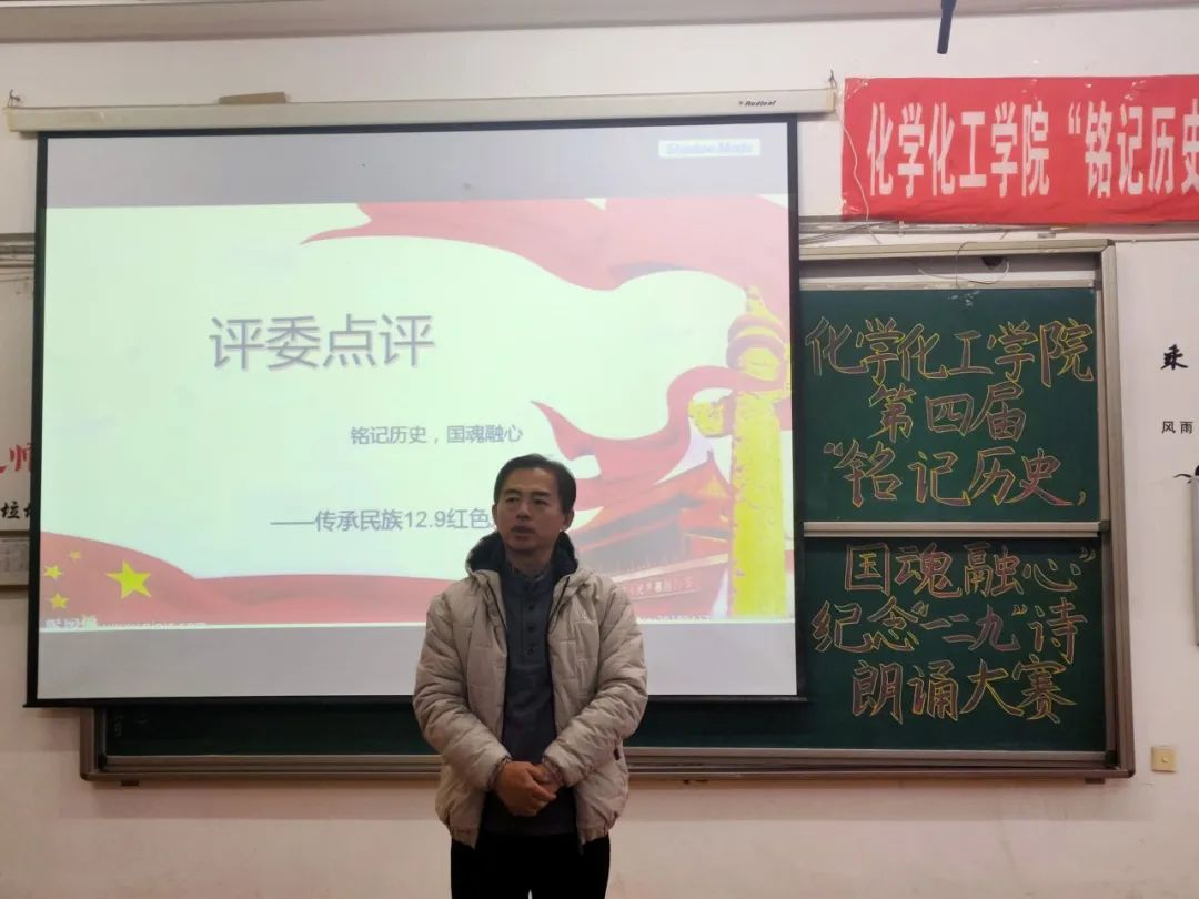 第四届“铭记历史,国魂融心”纪念“一二·九”朗诵比赛在文科楼201教室举行,以此纪念“一二·九”运动85周年。本次活动由世界杯