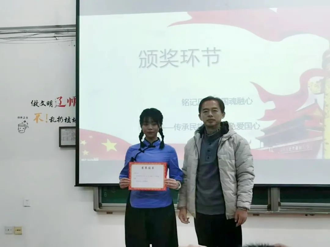 第九组出场的是2019级1班,他们的朗诵主题是《勿忘国耻,续写华章》。