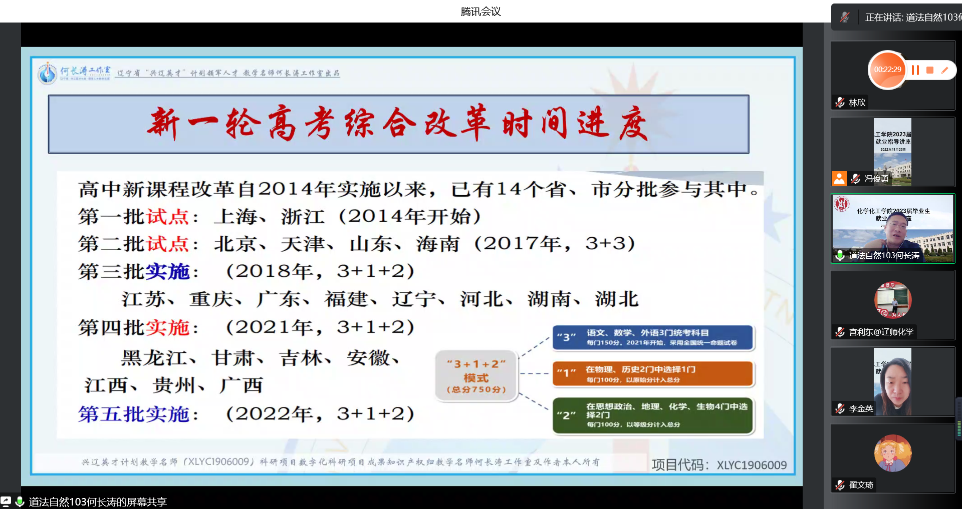 随后,何老师针对新高考、新课标、新教材改革及教育部印发的《普通高校本科招生选考科目要求指引》通知,发表了其对如今高中选课走班情况的独道见解。结合“大连金普新区教育系统招聘2023年全日制毕业生300名(辽师专场)”公告,以具有丰富教学科研经验的长者形象向同学们解读了目前就业形势及教学发展趋势。