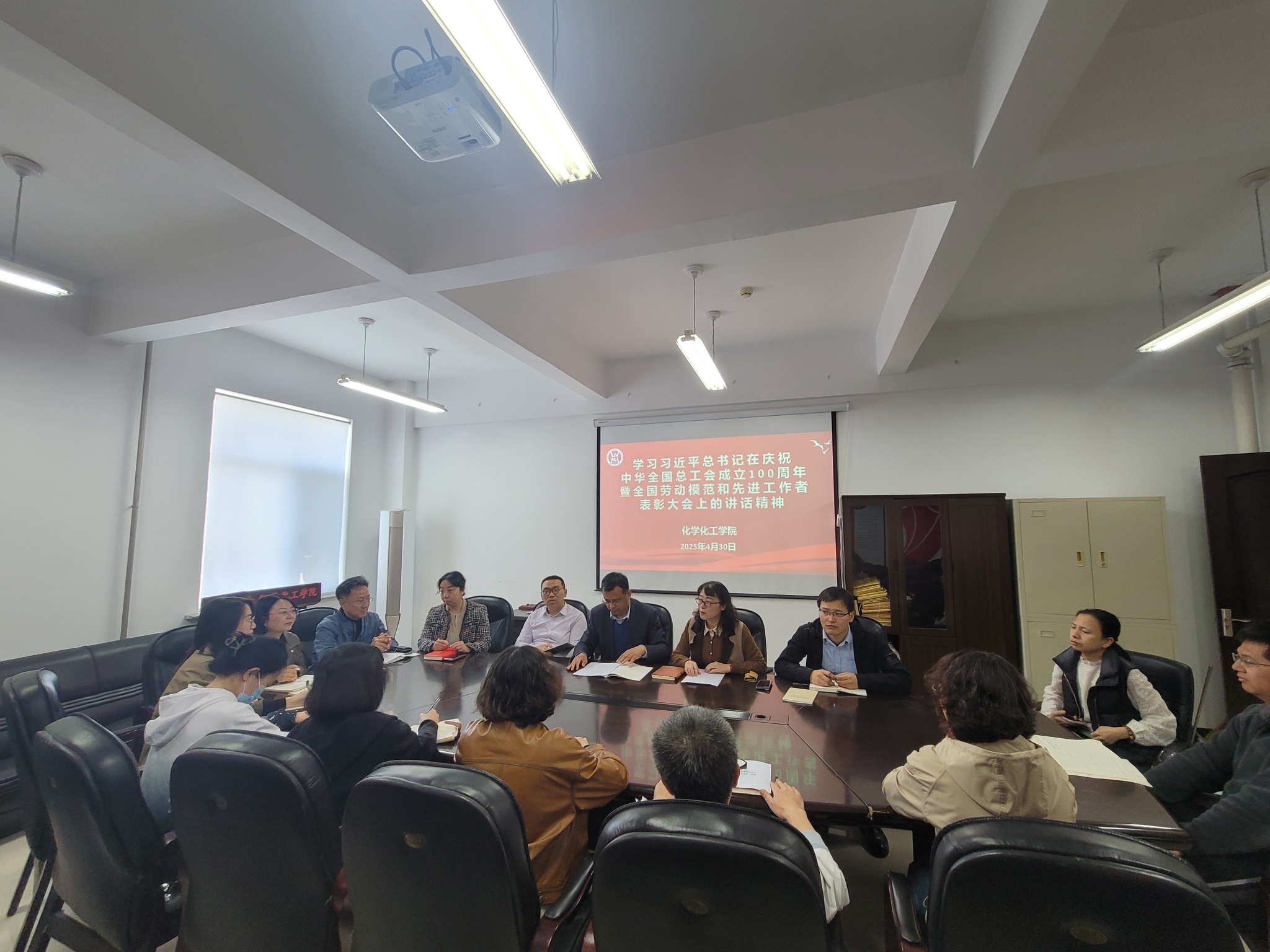 于2025年4月30日上午,在理化楼C522召开专题学习会议。学院党委委员、领导班子成员、工会委员及工会小组长参加会议,会议由化学化工学院党委书记于伟主持。
