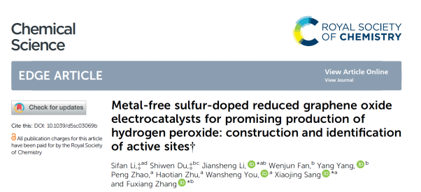 论文信息:Metal-free sulfur-doped reduced graphene oxide electrocatalysts for promising production of hydrogen peroxide: construction and identification of active sites