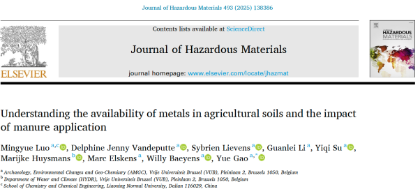 论文信息:Understanding the availability of metals in agricultural soils and the impact of manure application.
