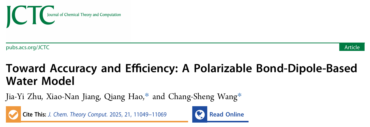 水分子间的氢键网络赋予其独特的物理化学性质,直接调控蛋白质、核酸等生物大分子的构象稳定性与功能活性。基于分子力学的水模型的计算精度和计算效率很大程度上影响着生物大分子多尺度模拟的可靠性和可行性,推动着高精度和高效率的可极化水模型的持续发展。针对前述挑战,基于课题组多年来创立和发展的可极化化学键偶极模型,王长生教授团队构建了基于化学键偶极的可极化水模型(PBFF-WAT-2025),该模型兼顾了计算精度和计算效率,为生物大分子体系在水溶液下的多尺度模拟提供了一种新方法。